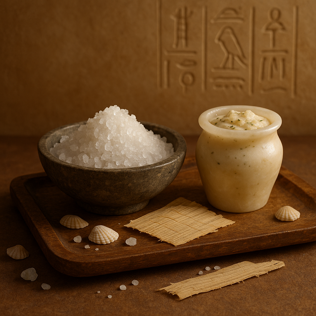 Mořská sůl z Rudého a Středozemního moře byla v Egyptě ceněna pro své léčivé vlastnosti. Kleopatra ji používala pro odstranění odumřelých buněk a detoxikaci pokožky.